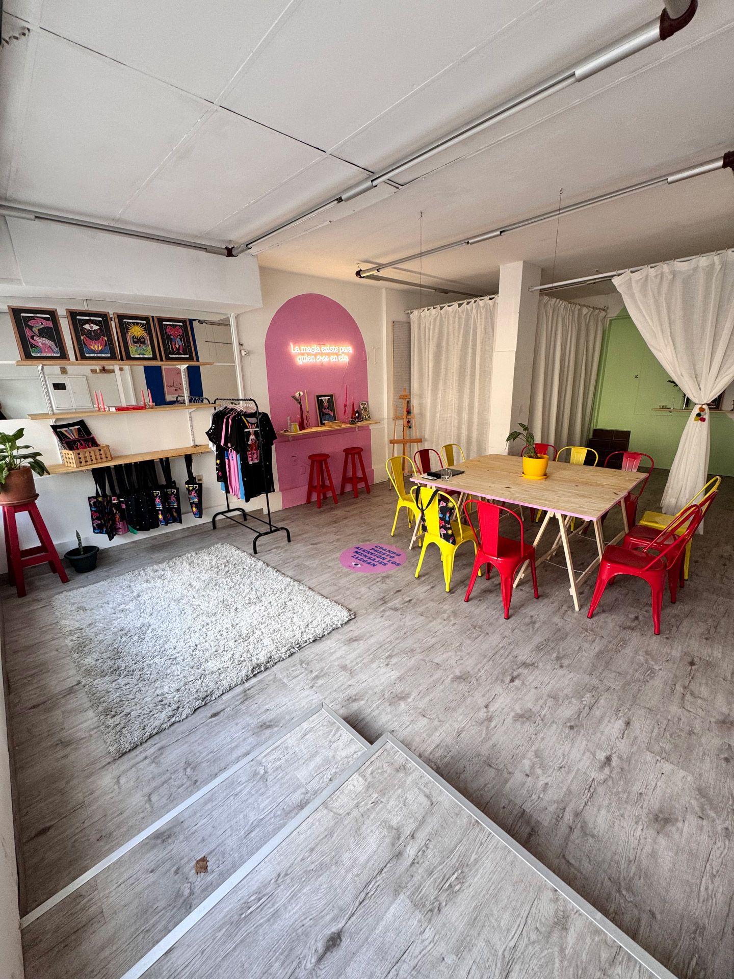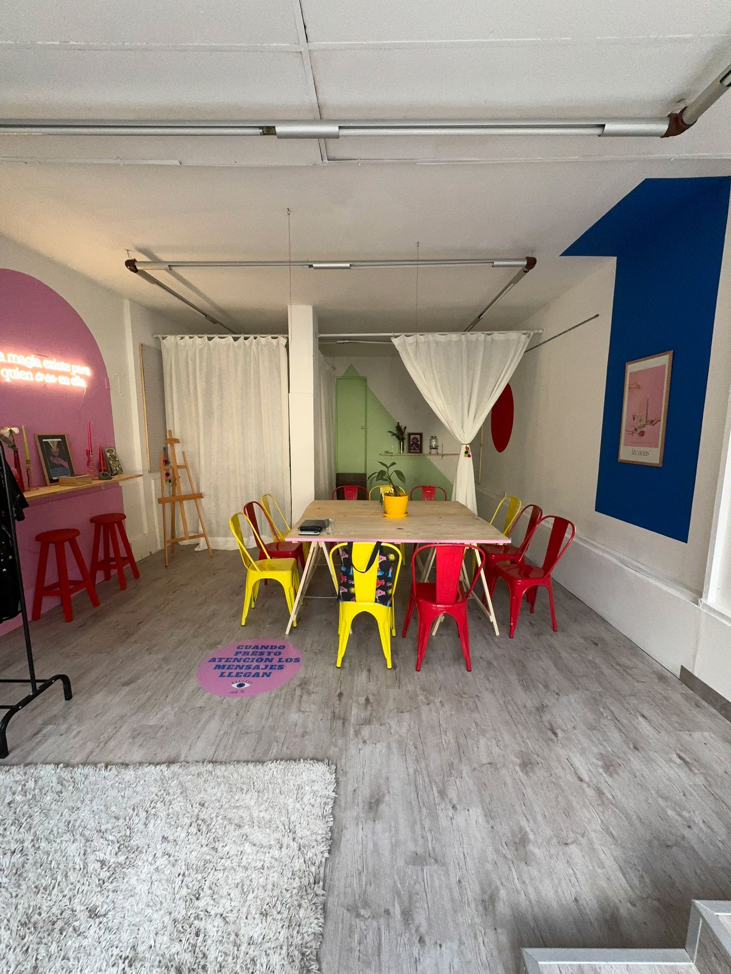 Dentro del Cowork creativo podés venir a desarrollar tu arte, tu emprendimiento o tu proyecto en un entorno lleno de color, símbolos y buena energía.